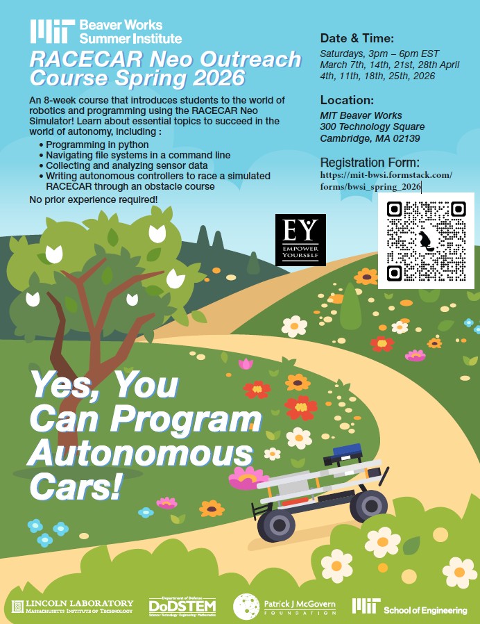 • RACECAR Neo Outreach Course Spring 2026 – Saturdays 3pm to 6pm
